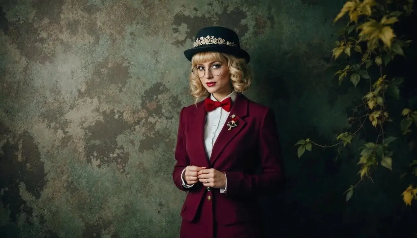 - Dress or Suit:Â Choose a vintage or retro dress, perhaps in a floral pattern or solid color like deep burgundy.