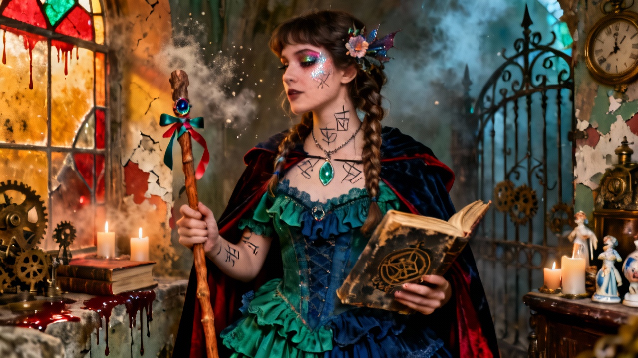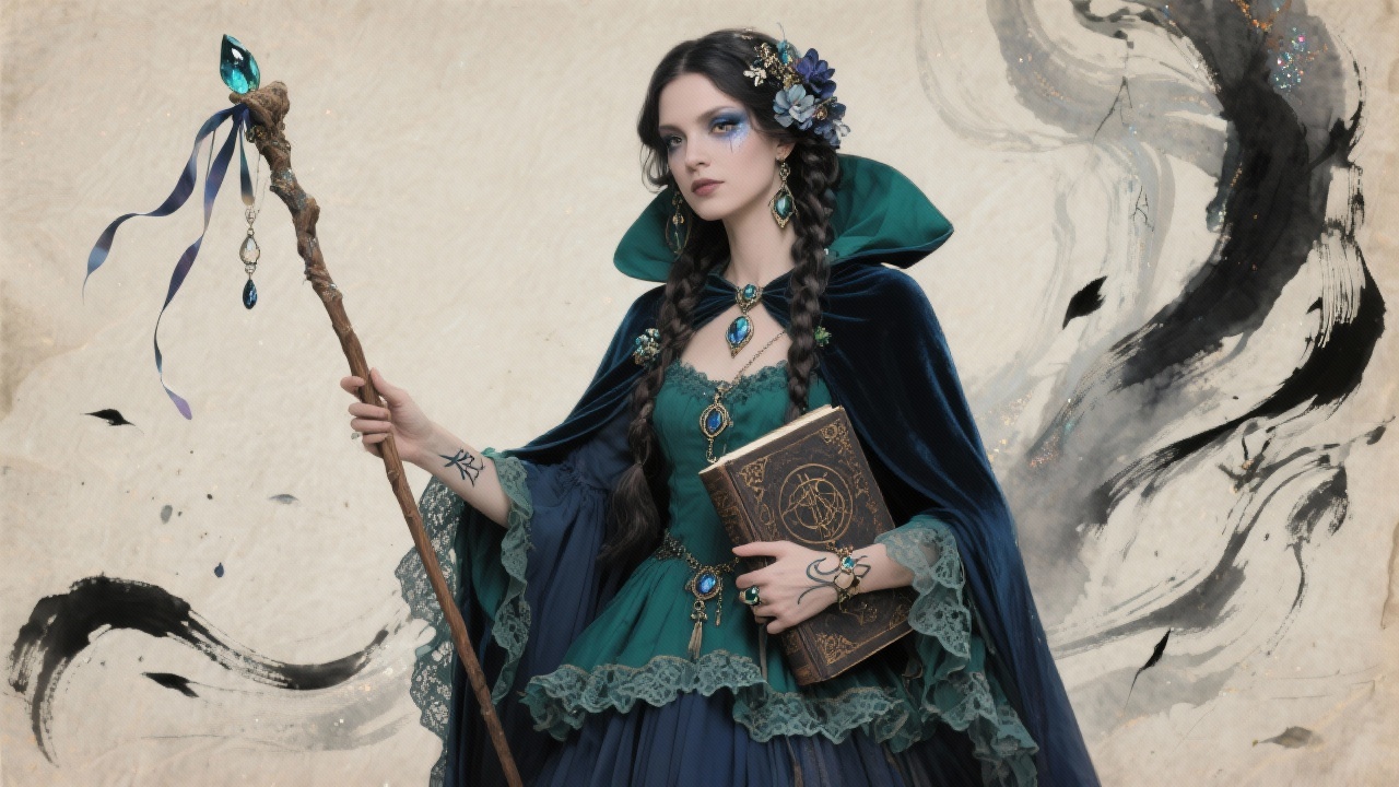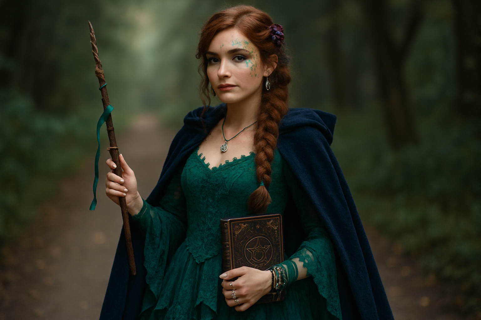 - Whimsical Attire:Â Wear a flowing, layered dress with lace or ruffles, in colors like emerald or midnight blue. Layering gives it a mystical quality.