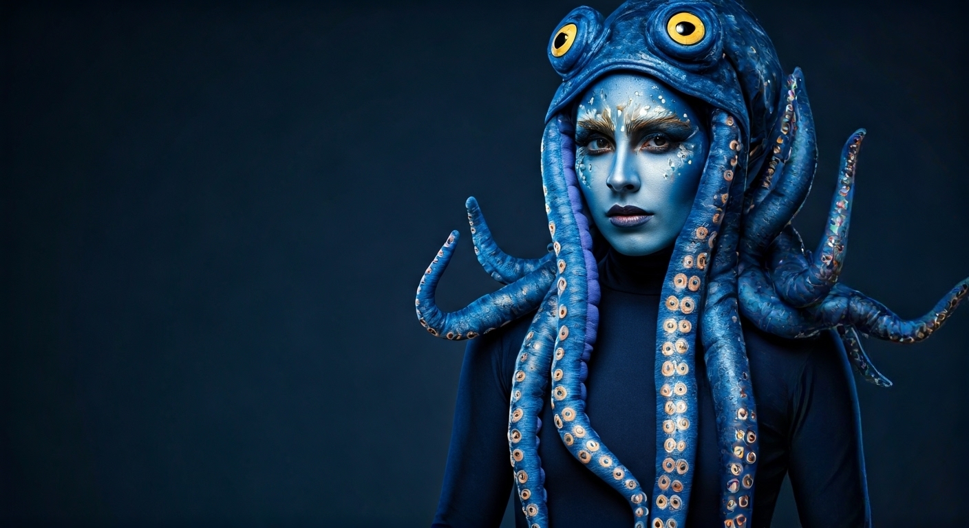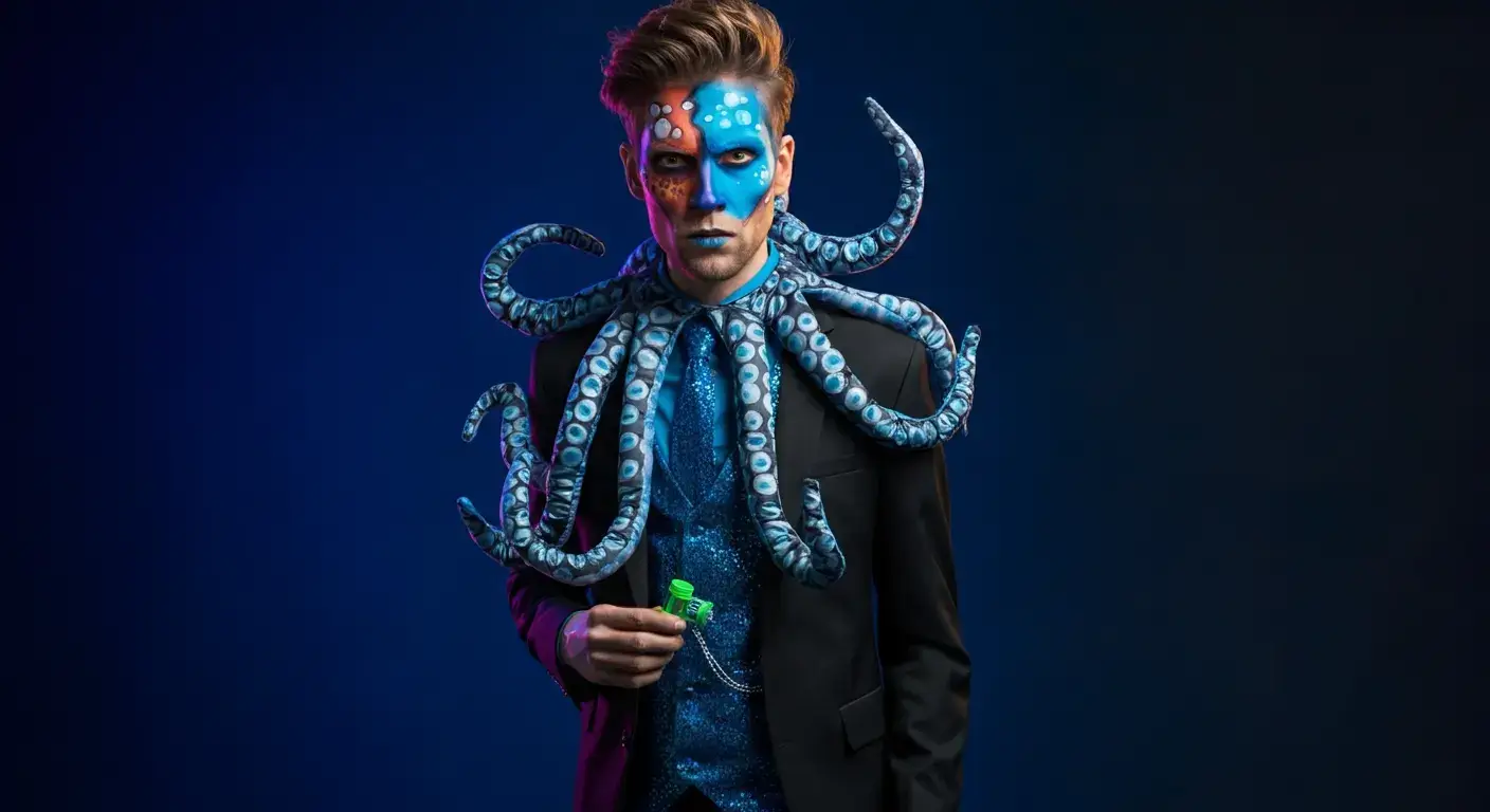 Embrace this blend of ocean magic and gothic elements with Octopus Ozzie, crafting a costume that not only showcases your unique style but also invites playful exploration this Halloween.
