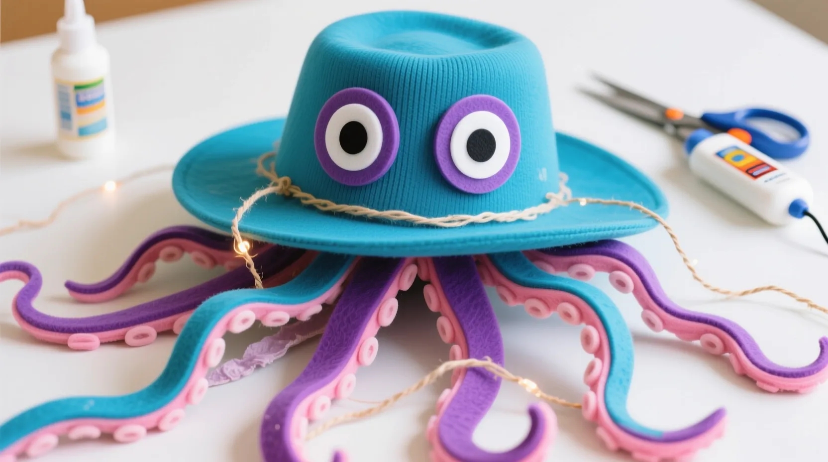 Octopus HeadpieceHeadband with colorful mini tentacles and vibrant embellishments.Headpiece adorned with black tentacles, incorporating lace or feathers for gothic vibes.